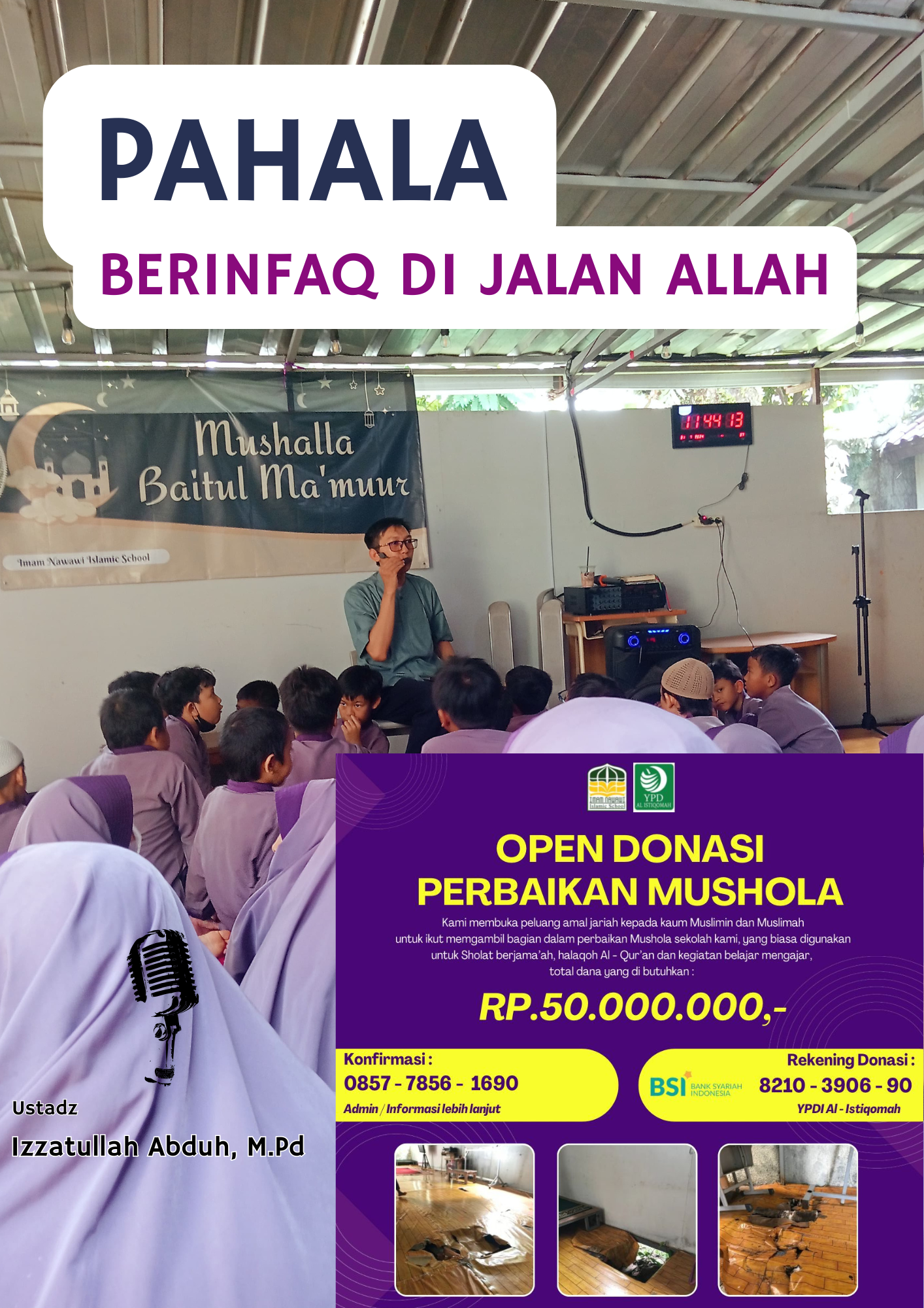 yang mana pada tahun ini pihak yayasan sekolah dan juga POMI bersinergi untuk mensukseskan acara tahun ini yang alhamdulillah berjalan dengan lancar atas izin dan pertolongan dari Allah ta’ala, pada tahun ini dana ta’awun terkumpul 14.150.000,- rupiah, dan diantara rangkaian acara Ramadhan Mubarok 1446 H adalah santunan kepada Dhuafa dan anak – anak yatim yang berada di sekitar sekolah, berupa paket sembako dan uang tunai, kemudian diikuti dengan acara puncak yaitu kajian anak bersama Kak Raihan Sapda Akbar hafidzohullah, dan Iftor Jama’i….